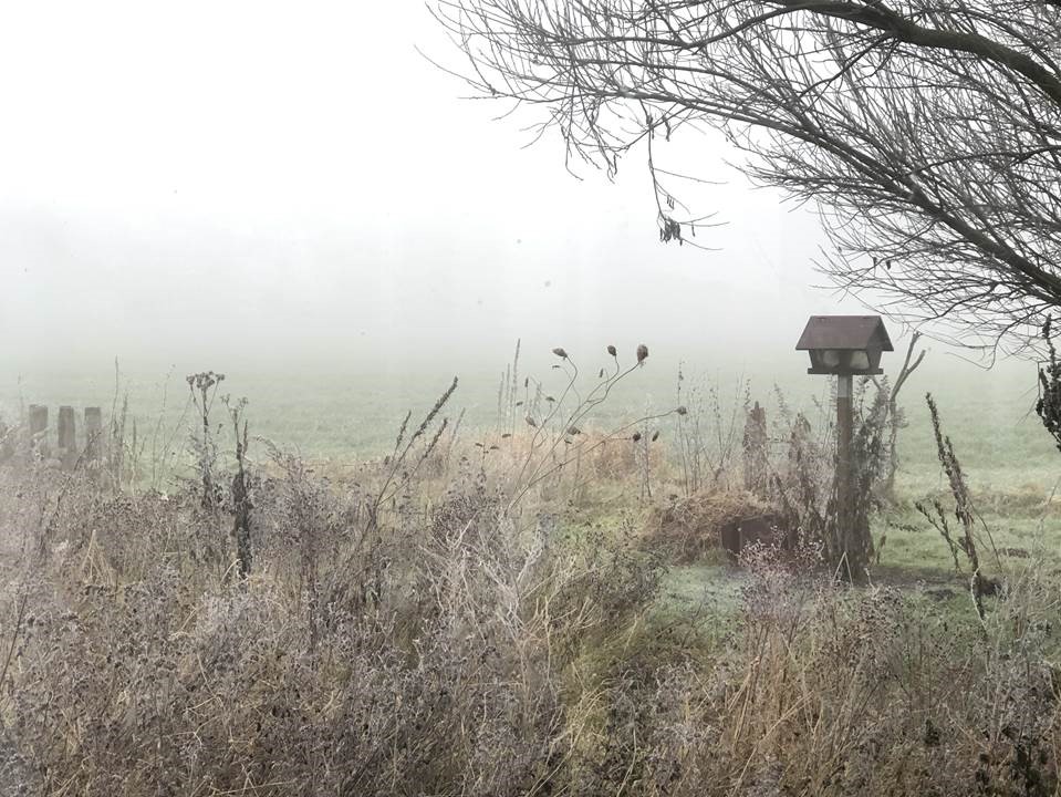 Herbst/Winter im Naturgarten – Futter für Vögel und Überwinterungsmöglichkeiten für allerlei Getier und Insekten. Auch speziell für Wildbienen, die in den trockenen Stängeln im Jahr nach der Blüte ihre Nester anlegen und dann im dritten Standjahr erst schlüpfen. (Foto: Klee)