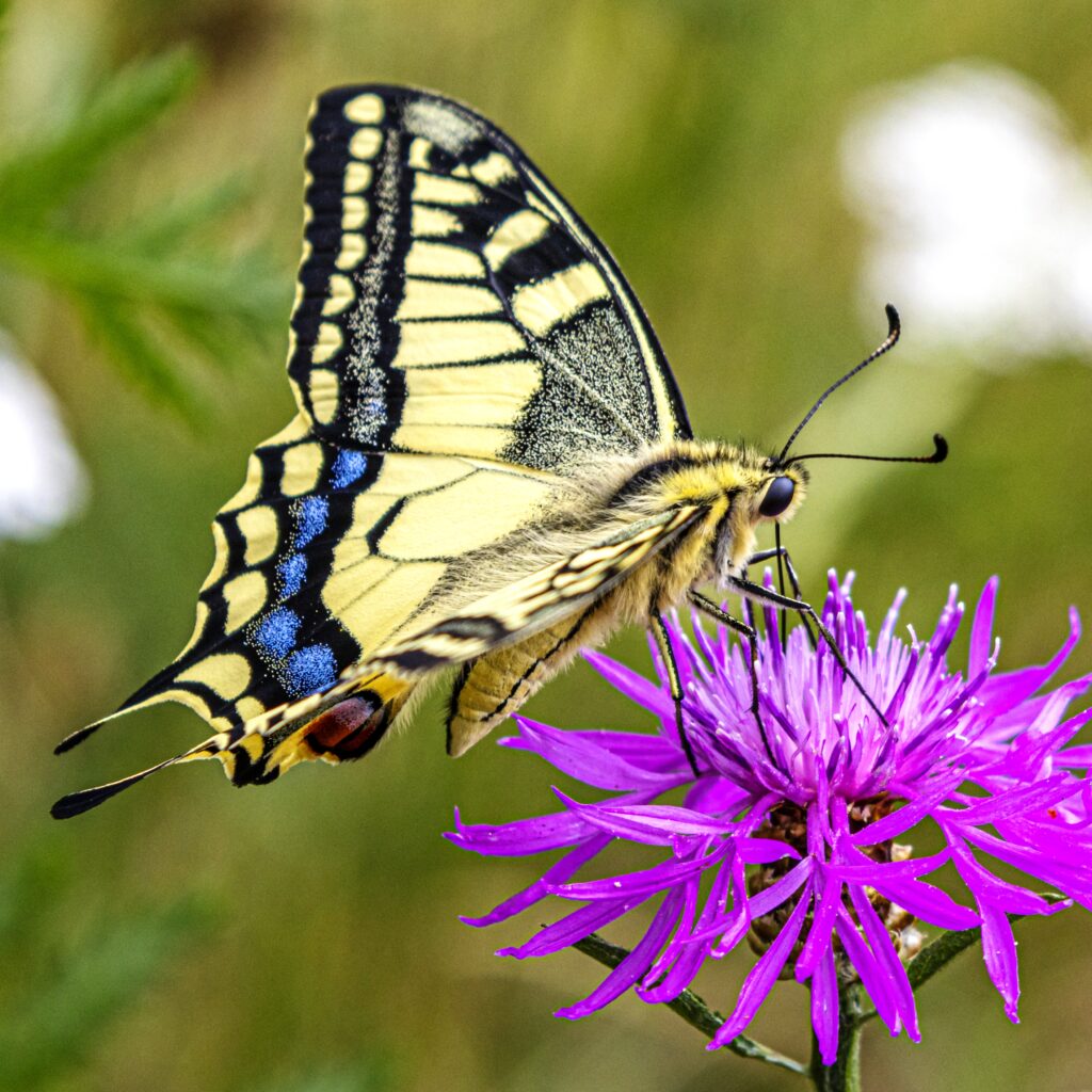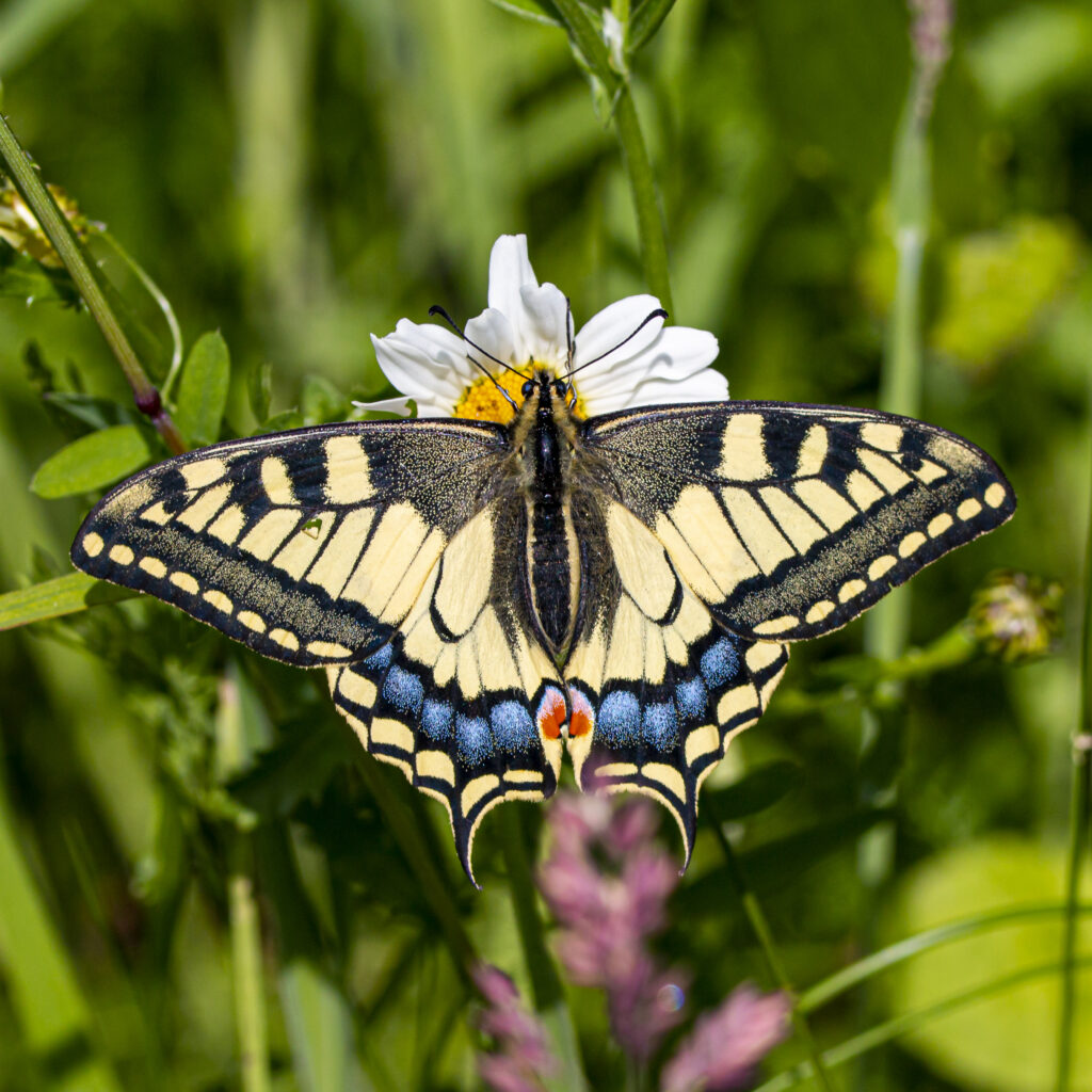Der größte, bei uns vorkommende, Tagfalter ist der Schwalbenschwanz (Papilio machaon). Sein Lebensraum sind sonniges und offenes Gelände sowie Trockenrasenflächen. Wenn in Gärten Möhre, Dill oder auch Fenchel angebaut wird, kann man ihn auch dort antreffen. Zudem bevorzugt er violett/lila blühende Nektarpflanzen.