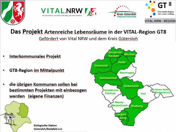 Wir werden bei der Pflege und Entwicklung der Marienfelder Heidefläche beratend und finanziell unterstützt durch die Biologische Station Gütersloh/Bielefeld e.V. mit Finanzmitteln aus dem Topf der Vital-Region GT8 / Vital NRW