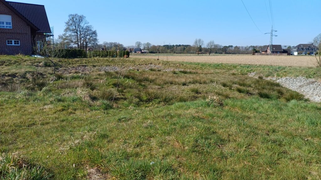 (jt) 3. April 2025 – Eine Fläche von ca. 1000 qm am Regenrückhaltebecken (RRB) „Krummer Timpen“ steht zur Einsaat mit regio-zertifiziertem Saatgut bereit. Dieses Saatgut enthält nur Pflanzensamen von Pflanzen, die in dieser Region heimisch sind und von denen das Saatgut auch in der Region gewonnen wurde.